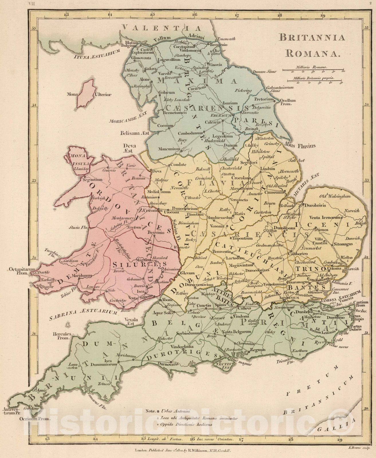 Historic Map : England; Wales, 1800 Britannia Romana. , Vintage